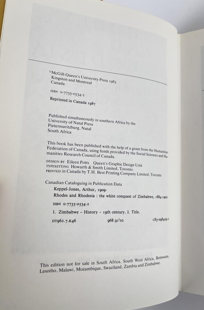 Written by Arthur Keppel-Jones. Reprint, 1987.