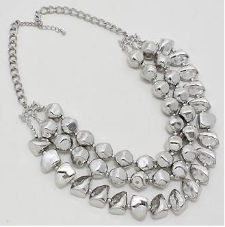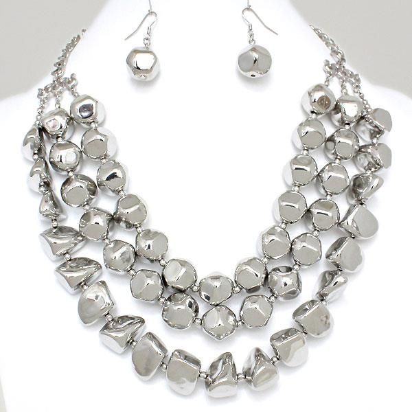 This necklace and earrings have a nice variety of large natural shaped silvery stones.<pre>Color : rhodium . Necklace Size : 20" + 3" L . Charm Size : 2 1/2" . Earring Size : 1 1/2" </pre>