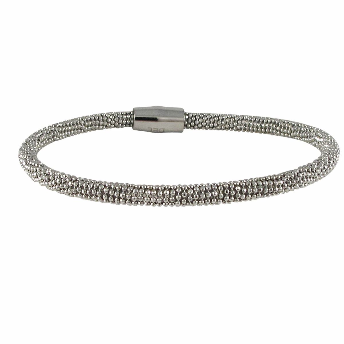Rhodium Over Stainless Steel Mesh Magnet Bangle Bracelet- 7"