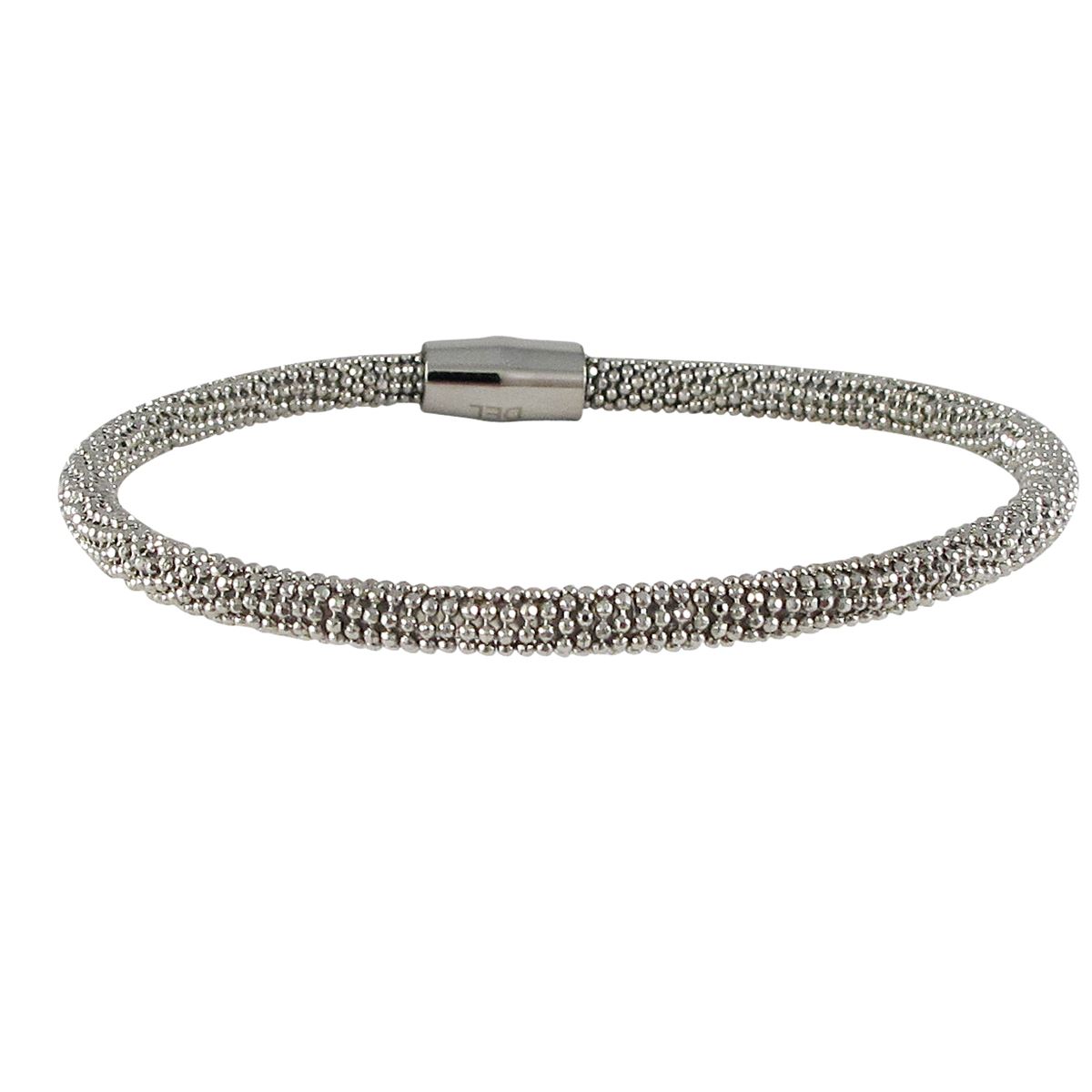 Rhodium Over Stainless Steel Mesh Magnet Bangle Bracelet- 7"