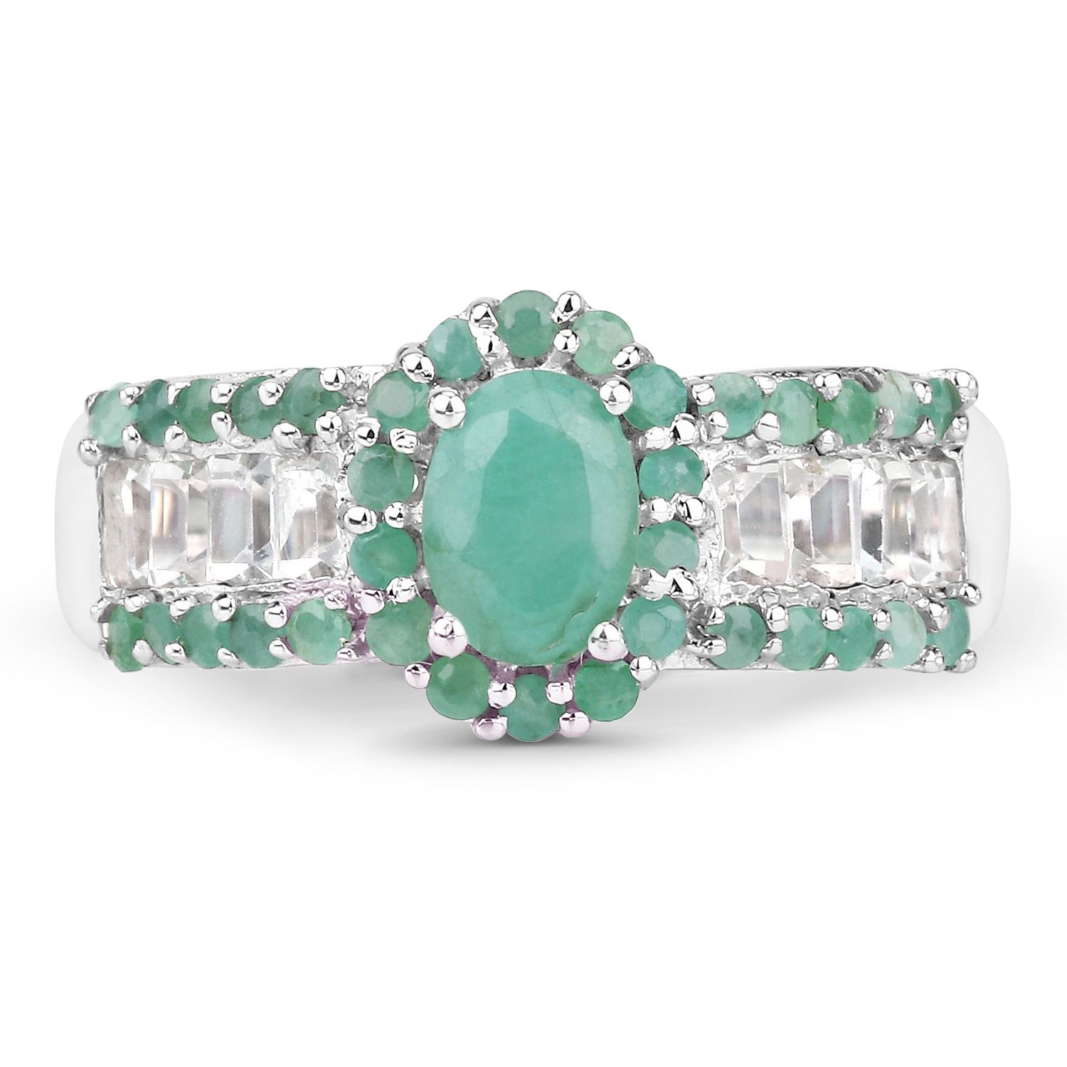 1.97 Carat Genuine Emerald and White Topaz.925 Sterling Silver Ring. Emerald Oval/7x5mm - 1/0.65 ctw Prong Setting Natural Oiled E + Emerald Round/1.60mm - 14/0.28 ctw Natural Oiled E + Emerald Round/1.40-1.50mm - 20/0.34 ctw Natural Oiled E + White Topaz Baguette/3.00x1.50mm - 10/0.70 ctw Natural Heat Treated C. Total weight 4.65 grams.