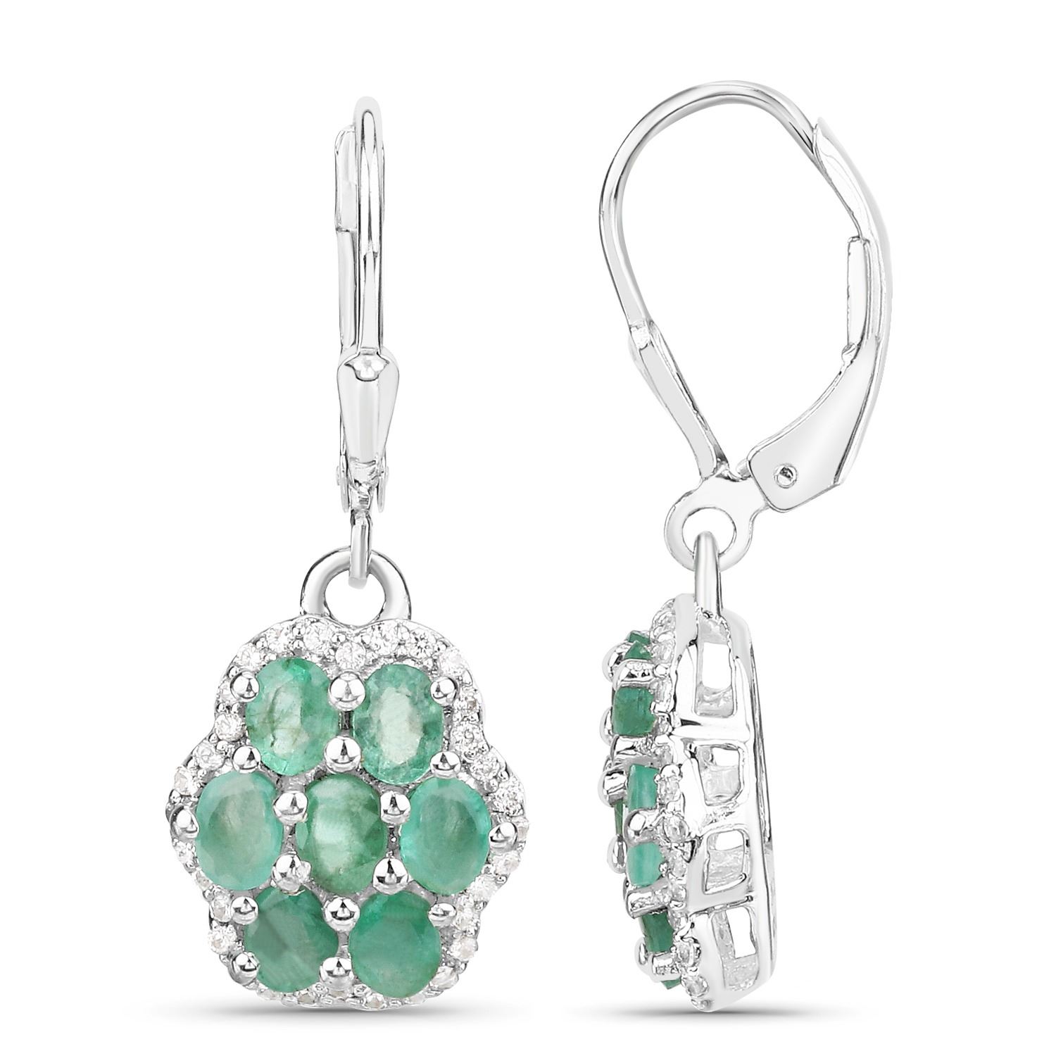2.48 Carat Genuine Zambian Emerald and White Zircon.925 Sterling Silver Earrings. Zambian Emerald Oval/4x3mm - 14/2.10 ctw Prong Setting Natural Oiled O + White Zircon Round/1.00mm - 64/0.38 ctw Synthetic Heat Treated CR. Total weight 3.45 grams.