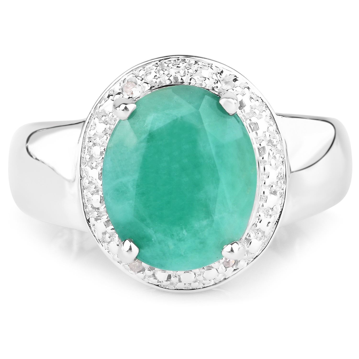 4.72 Carat Genuine Emerald and White Diamond.925 Sterling Silver Ring. Emerald Oval/12x10mm - 1/4.70 ctw Prong Setting Natural Oiled E + White Diamond Round/1.00mm - 4/0.02 ctw Natural Not Treated N I-J I2-I3. Total weight 7.64 grams. Ring size 6.5.