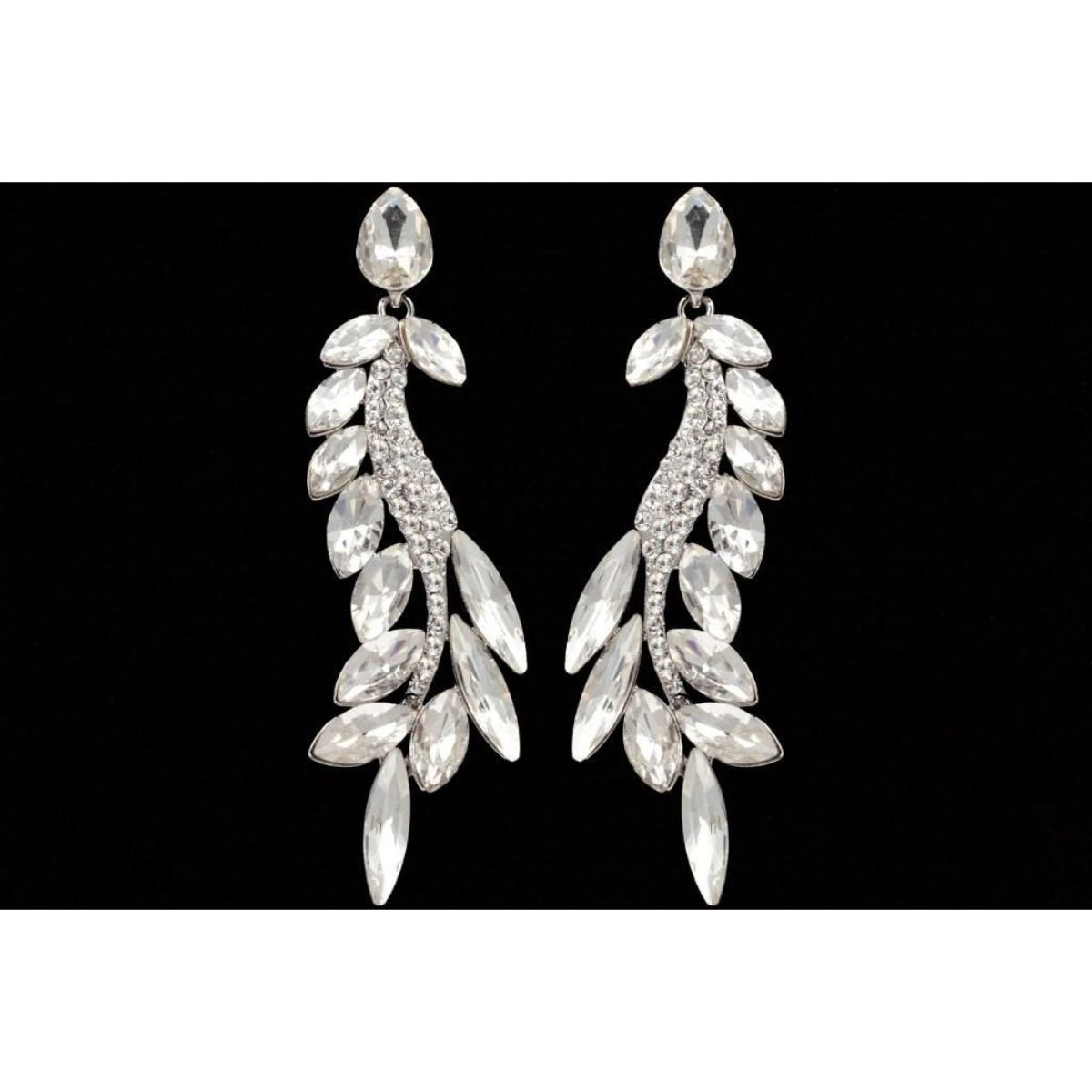Clear Czech crystals set into rhodium plated bridal drop earrings. 2.5 L".Â