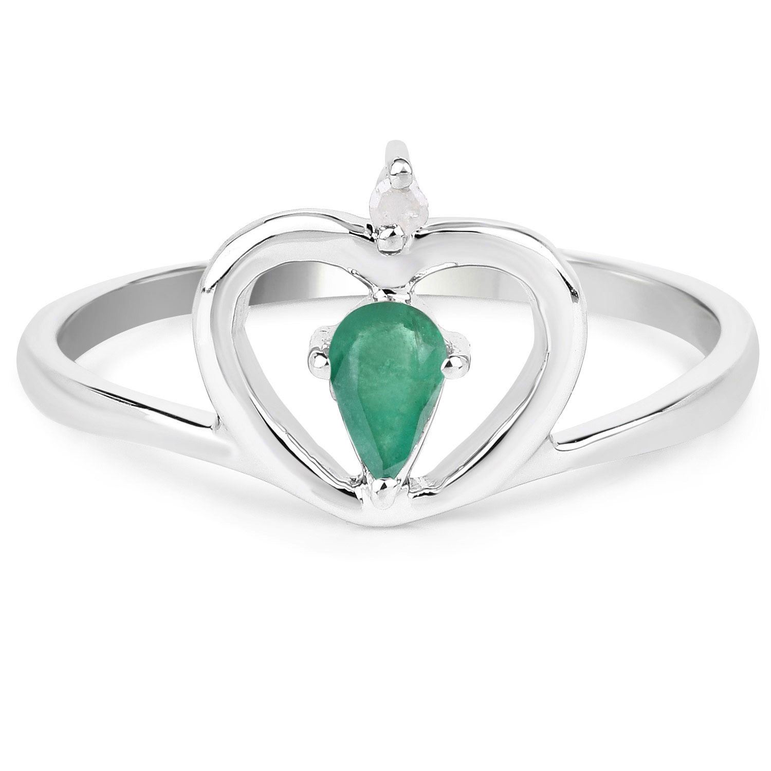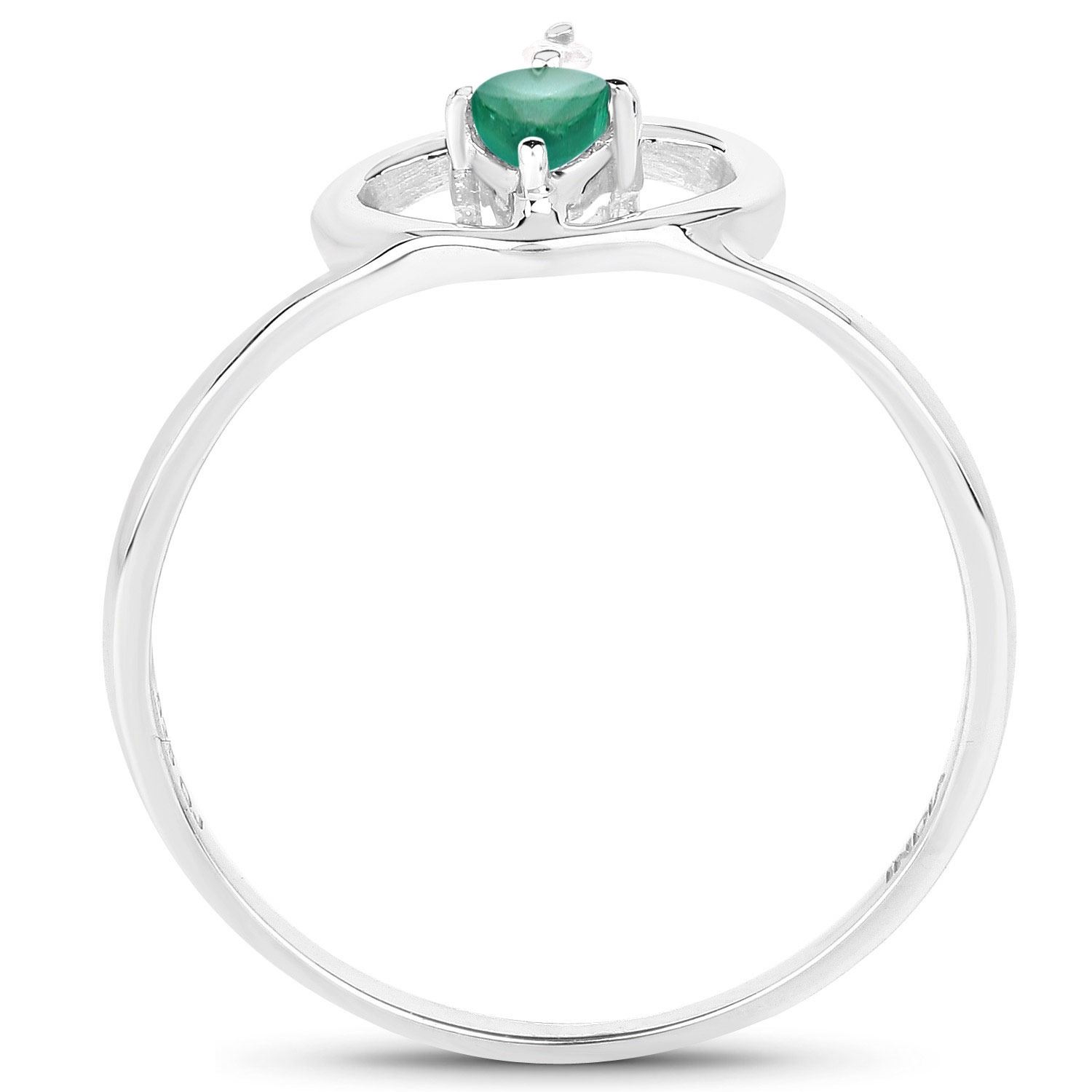 0.23 Carat Genuine Emerald and White Diamond.925 Sterling Silver Ring. Emerald Pear/5x3mm - 1/0.23 ctw Prong Setting Natural Oiled E + White Diamond Round/1.50mm - 1/0.02 ctw Natural Not Treated N I-J I2-I3. Total weight 1.34 grams. Ring size 7.