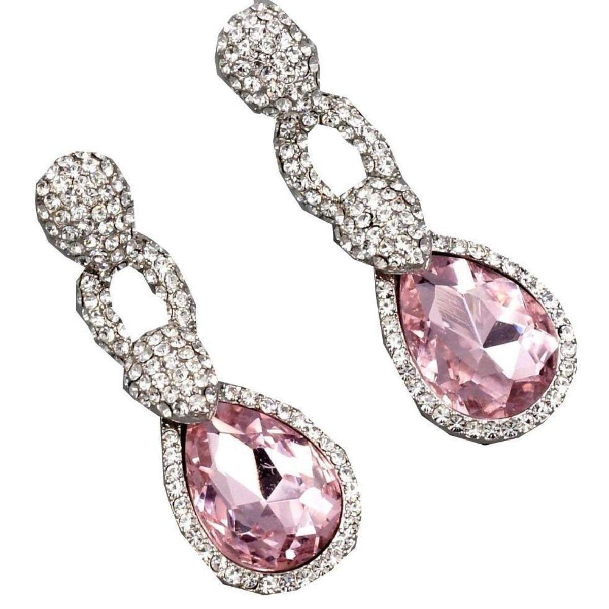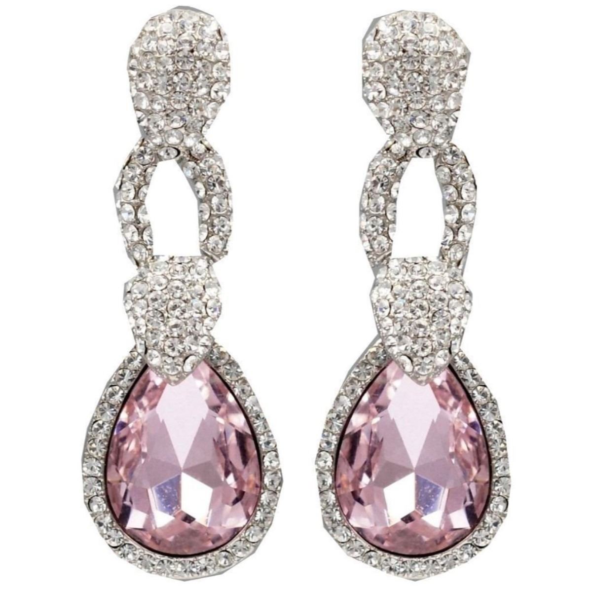 Rhodium Plated Pink Crystal Rhinestone Wedding Drop Dangle Earrings Stone / Color: Czech Crystal / Pink, Clear Metal / Color: Rhodium Plated / Rhodium Length: 1.875" Weight: One Earring Is 0.27 Oz Quantity: 1 Pair - 9988-04118-EB-88179