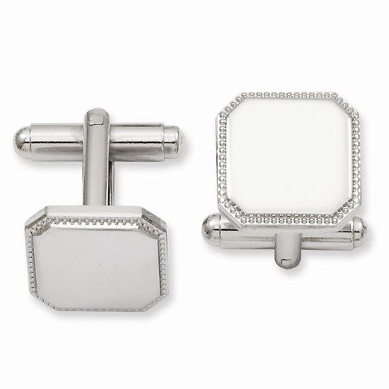 One piece Rhodium Plated Square Beaded Cuff Links