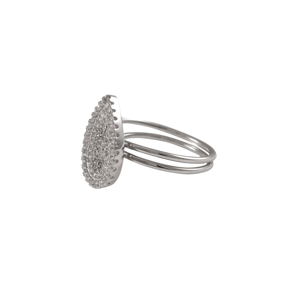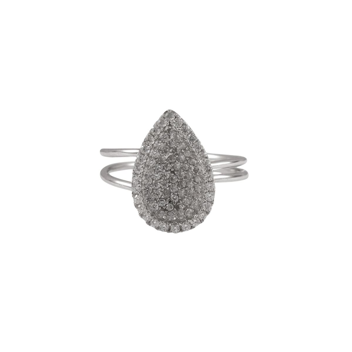 Rhodium Plated Sterling Silver, 11X16mm Teardrop With White CZ, Adjustable Ring, Size 5-9