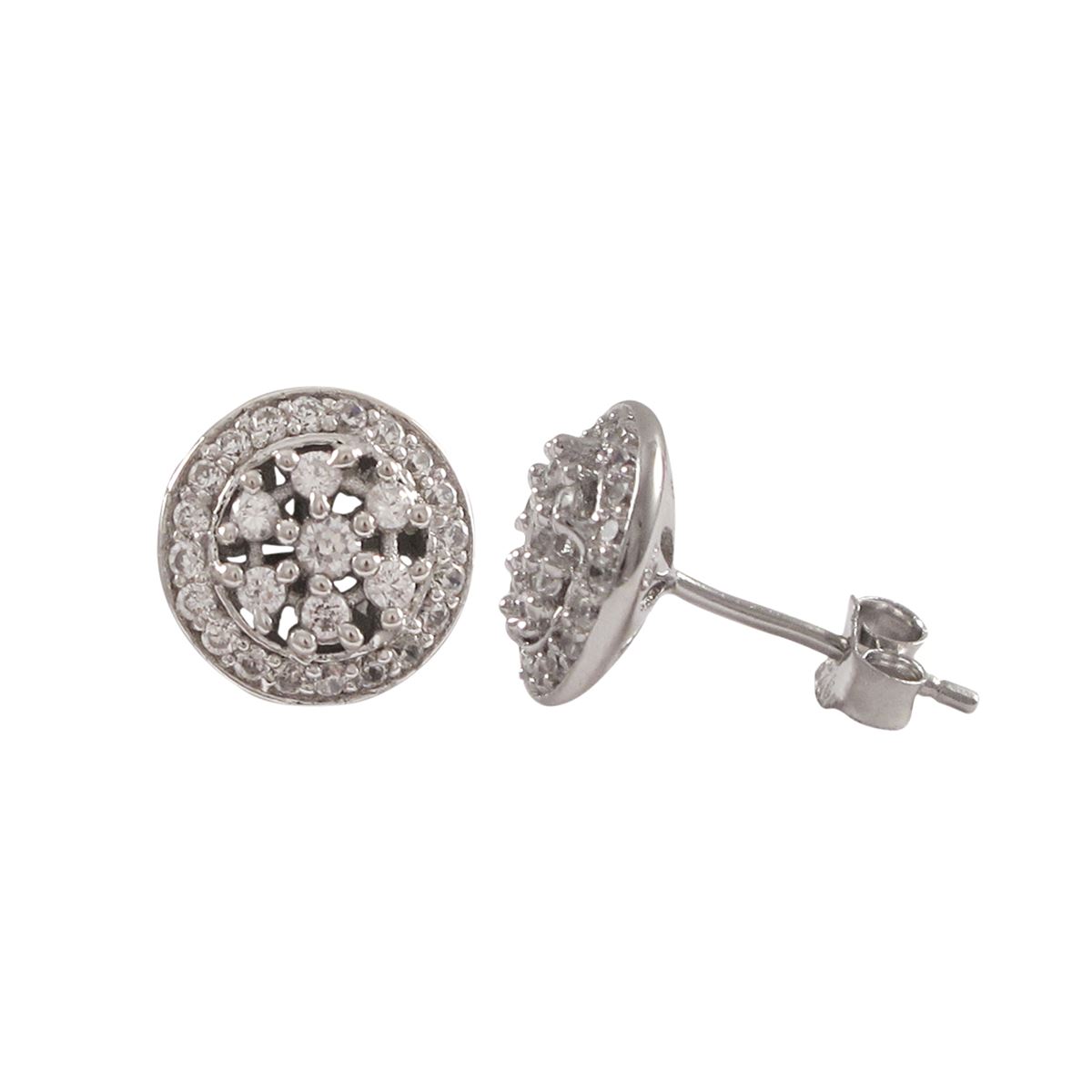 Rhodium Plated Sterling Silver CZ 10Mm Round Circle Post Stud Earrings