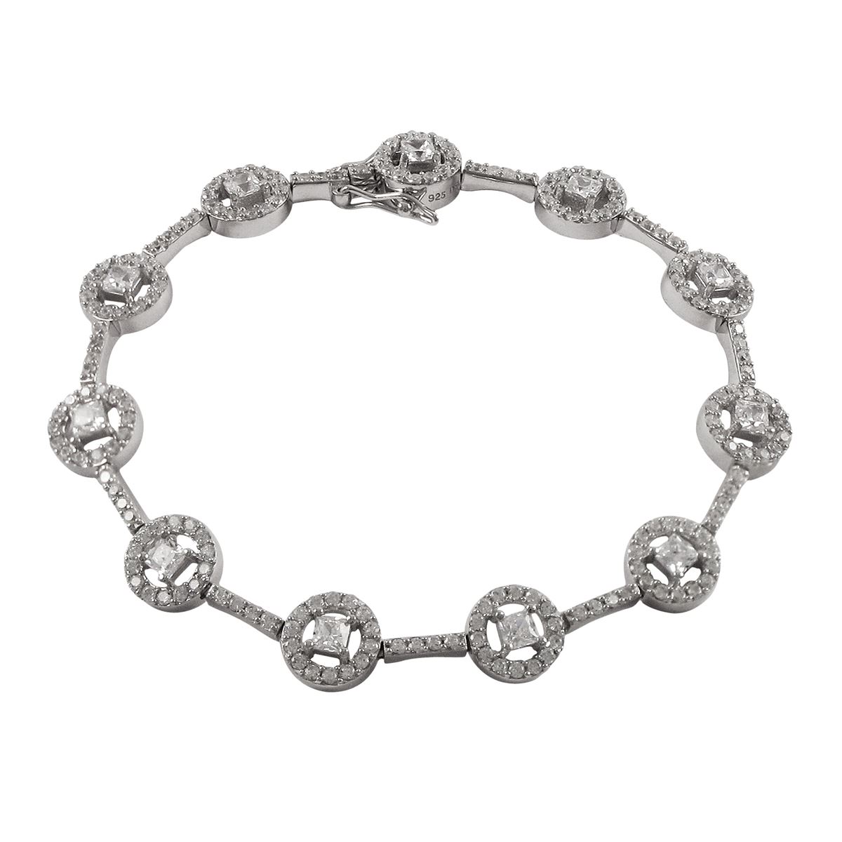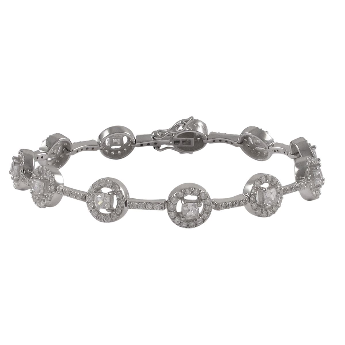 Rhodium Plated Sterling Silver CZ Bracelet With Safety Clasp, 7"