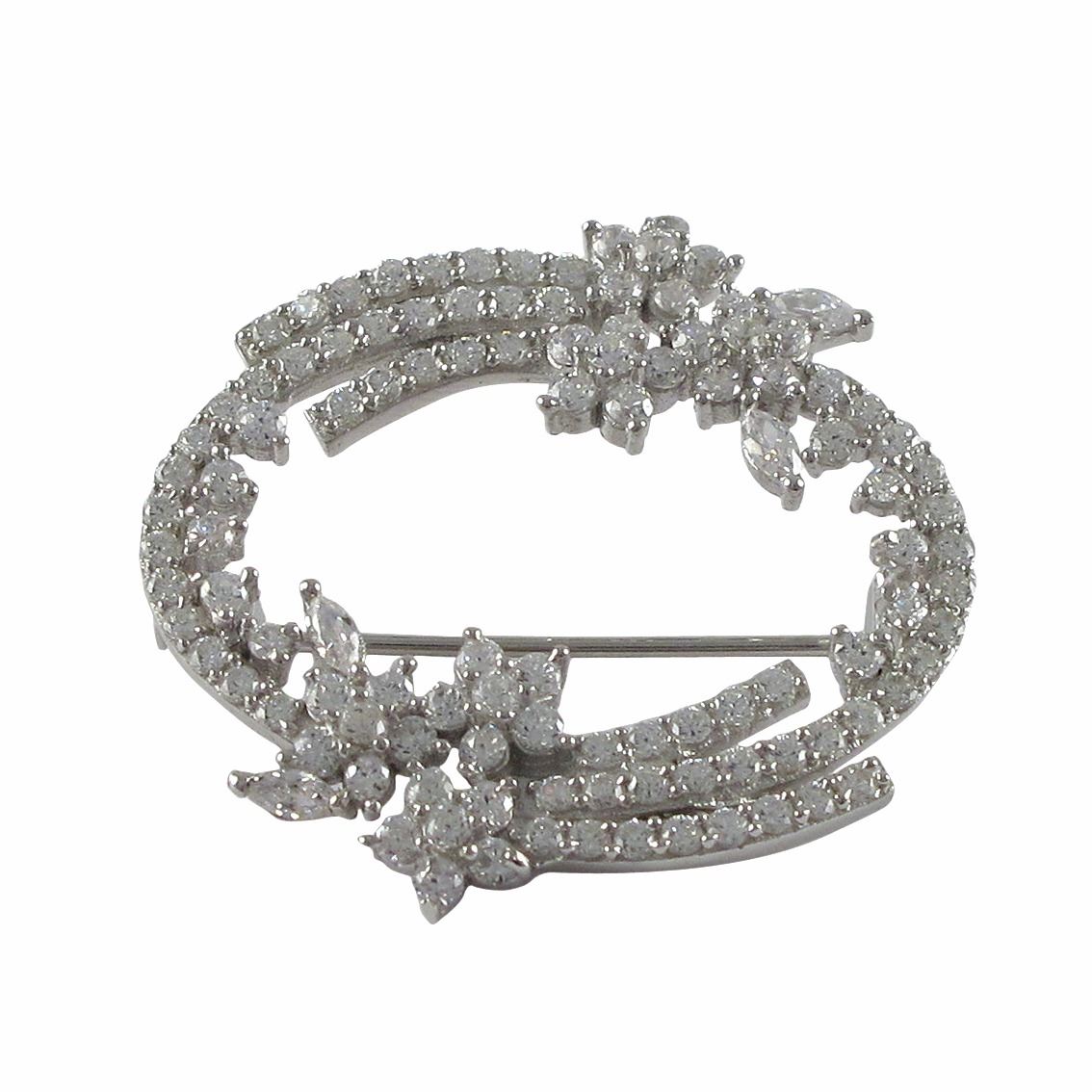 Rhodium Plated Sterling Silver CZ Brooch/Pin