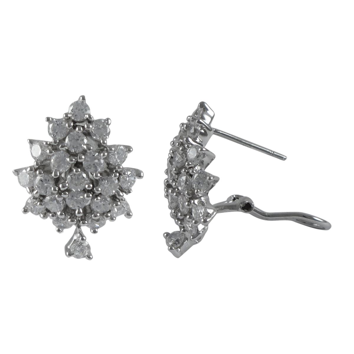 Rhodium Plated Sterling Silver, CZ Cluster Post Clip Earrings