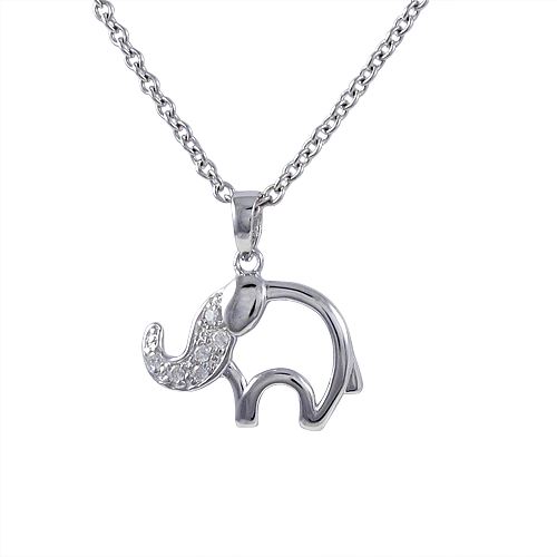 Rhodium Plated Sterling Silver CZ Elephant Pendant- 0.87"