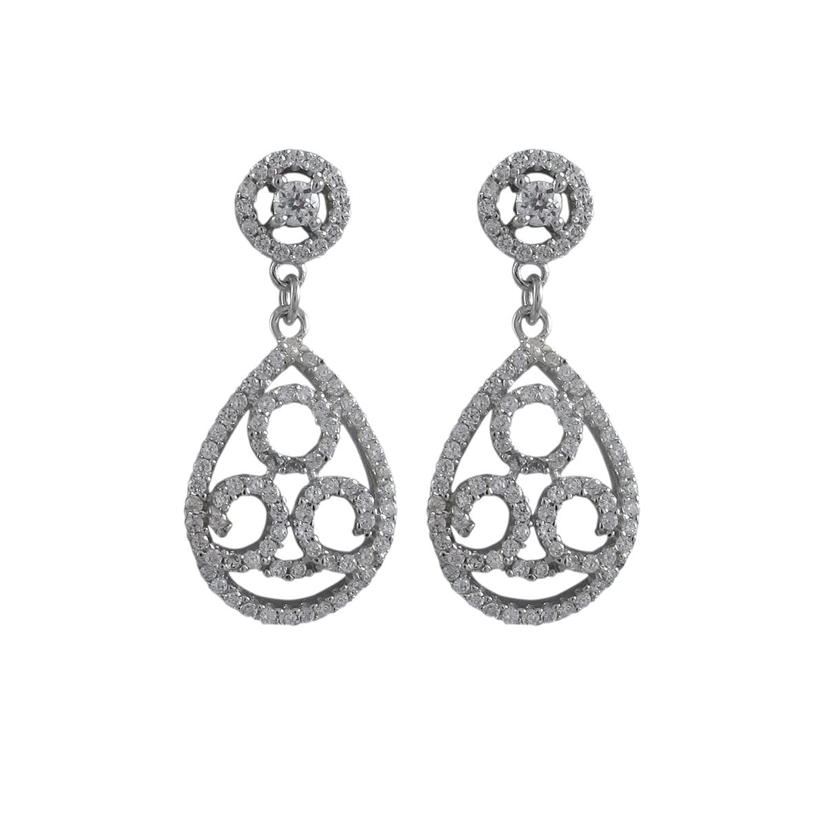 Rhodium Plated Sterling Silver CZ Teardrop Post Earrings