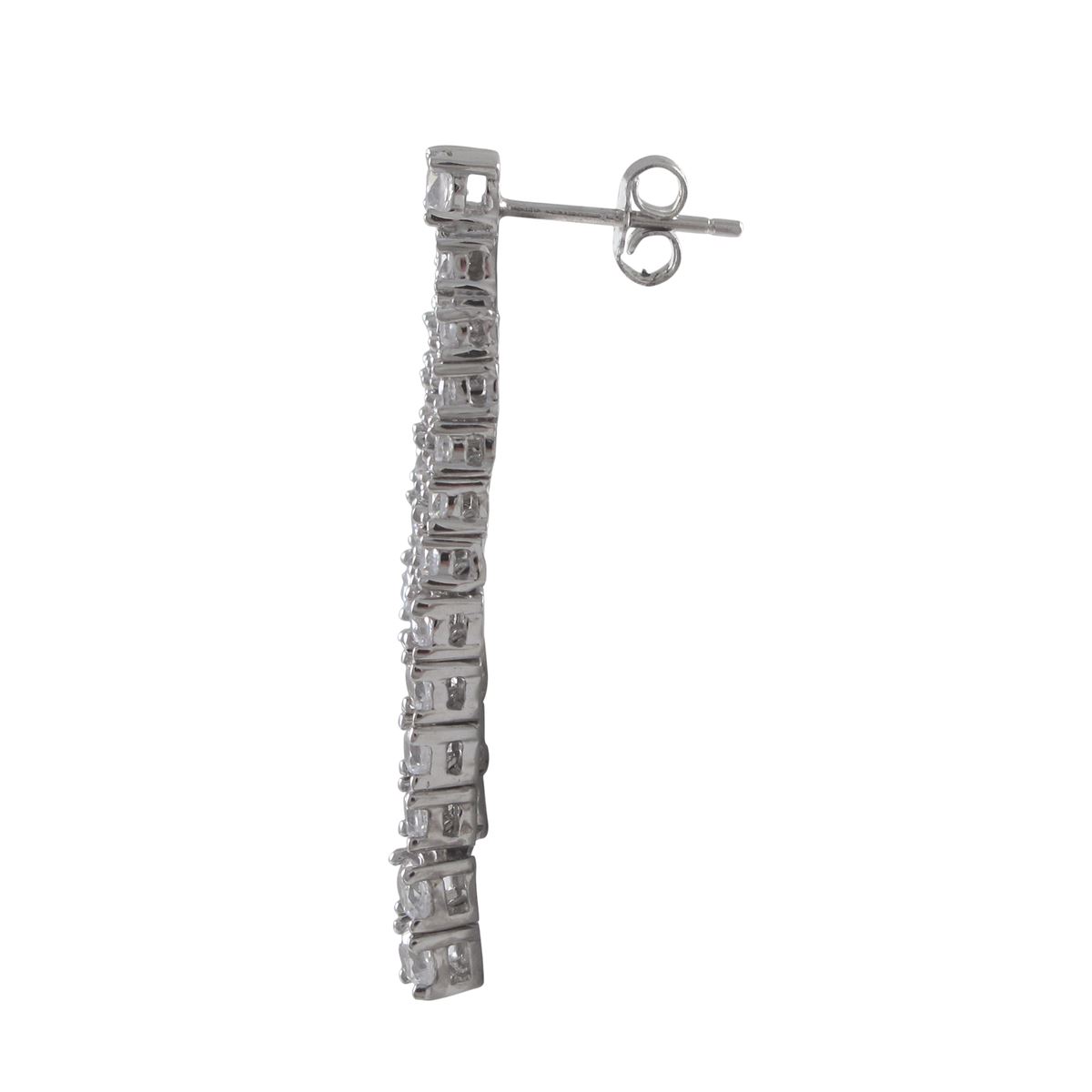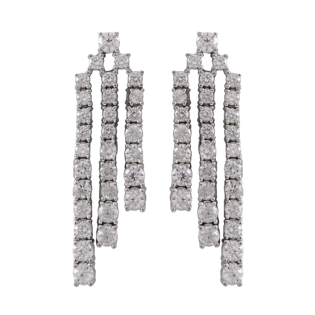 Rhodium Plated Sterling Silver CZ Three Row Post Earrings, 1.46"