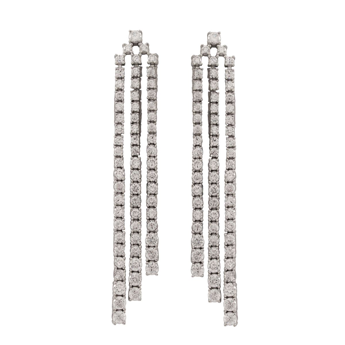 Rhodium Plated Sterling Silver CZ Three Row Post Earrings, 2.68