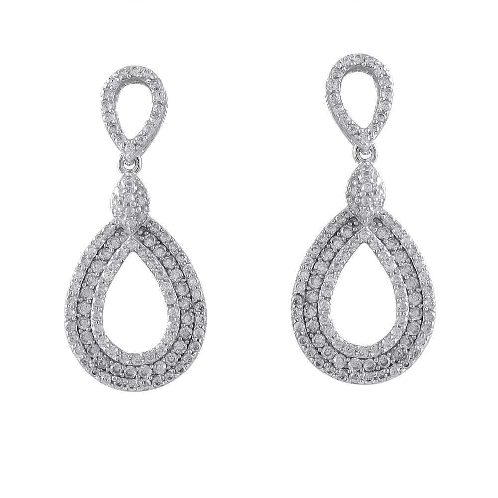 Rhodium Plated Sterling Silver Dangling Open Teardrop Shape Post Earrings With CZ, 1.38"