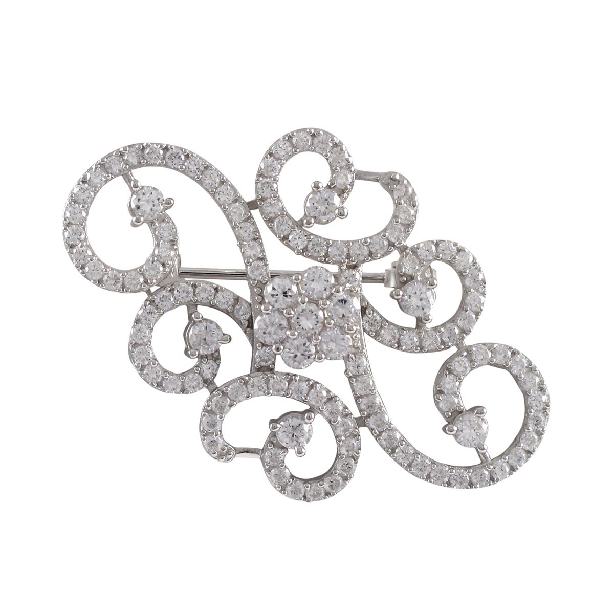 Rhodium Plated Sterling Silver, Flower Swirl CZ Brooch/Pin