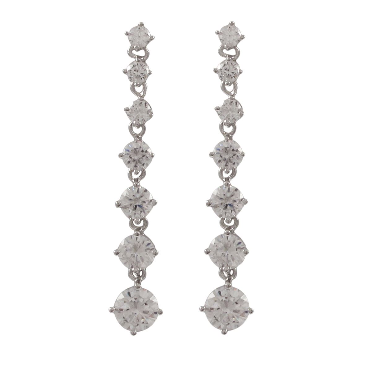 Rhodium Plated Sterling Silver, Graduating CZ Drop Post Earrings