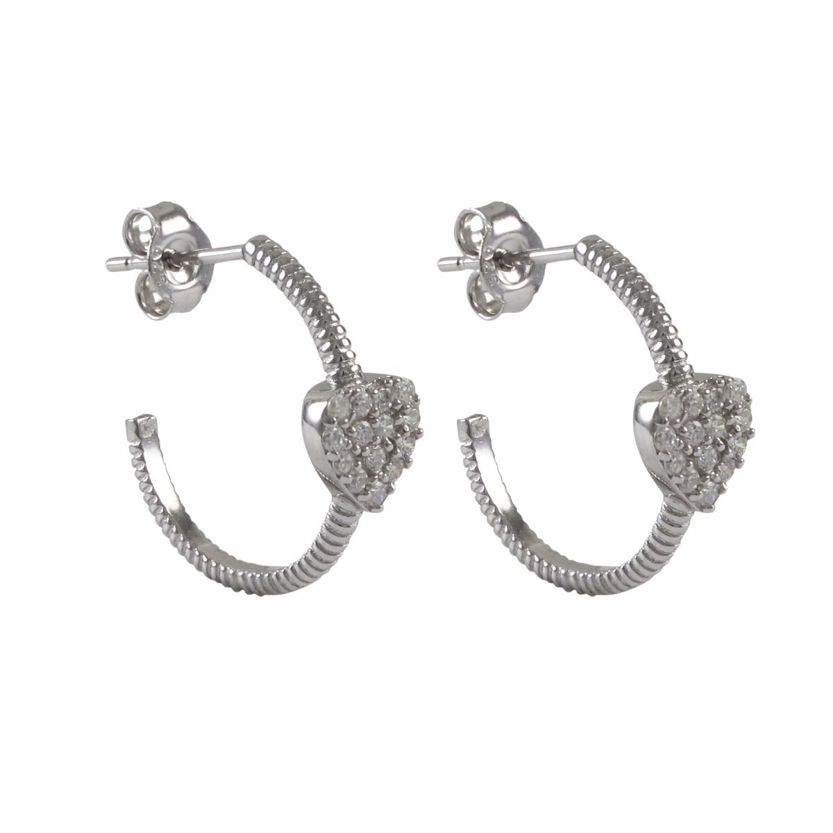 Rhodium Plated Sterling Silver Huggy Hoop Post Earrings With CZ Heart, 0.67&Quot;