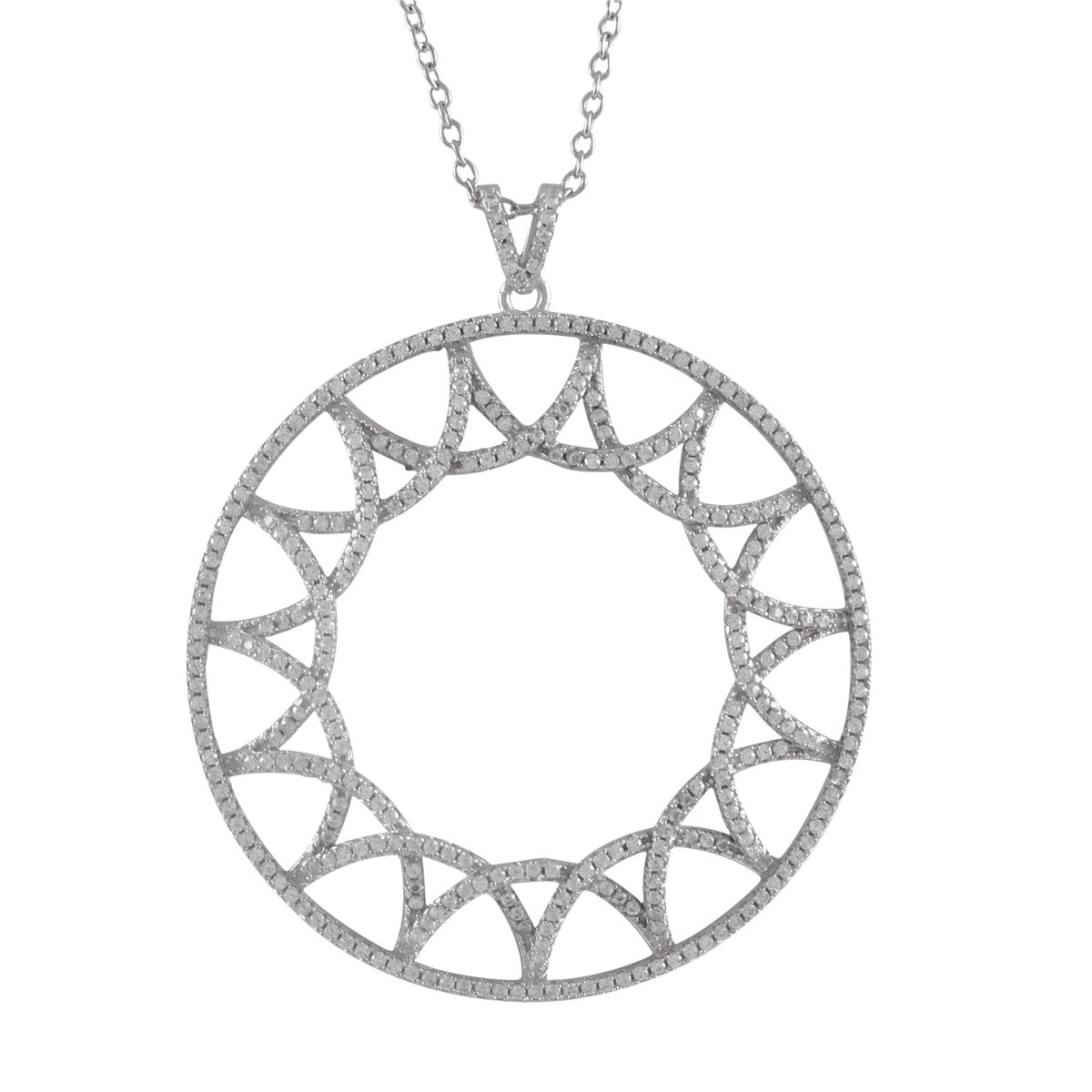 Rhodium Plated Sterling Silver, Open 45Mm Circle, Star Design CZ Pendant, 2.09"