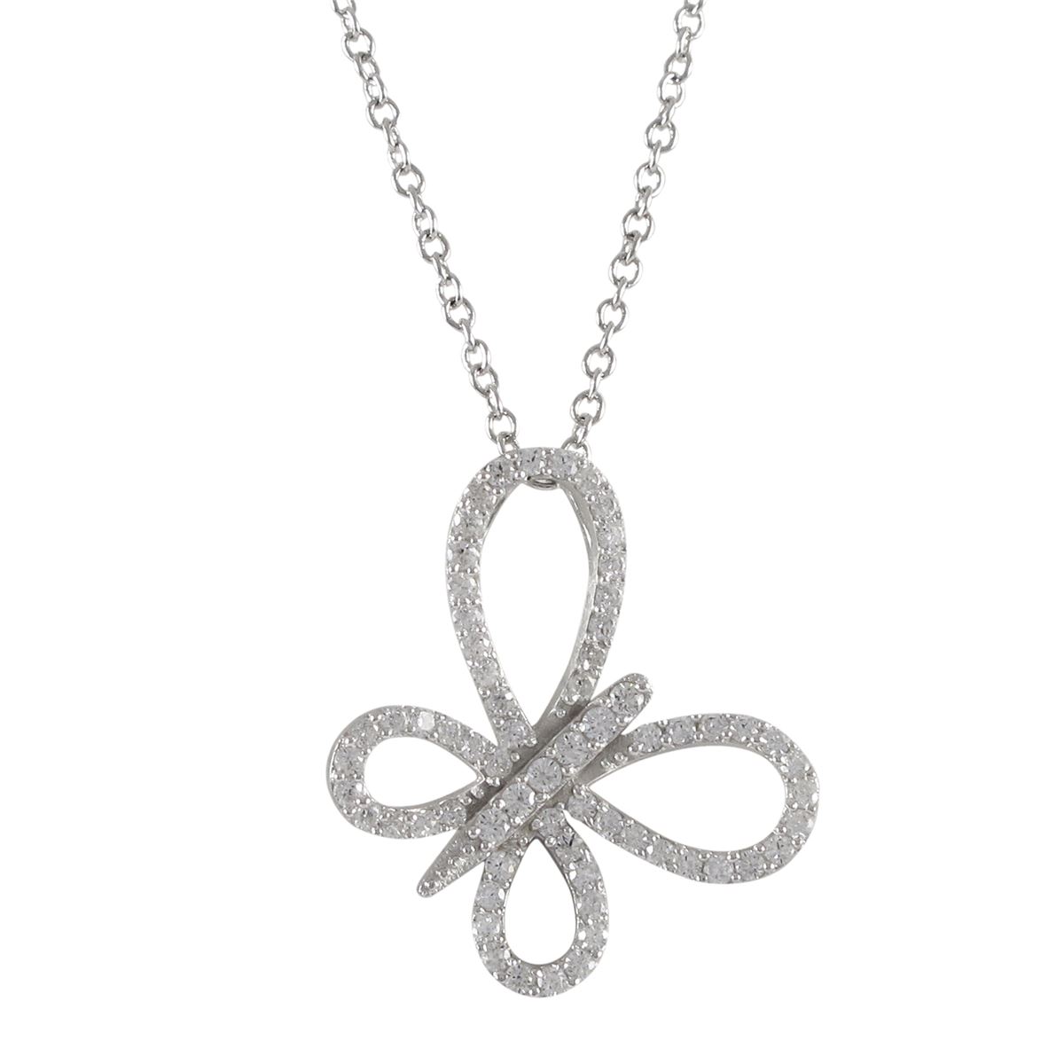 Rhodium Plated Sterling Silver Open Butterfly CZ Pendant, 1.02&Quot;