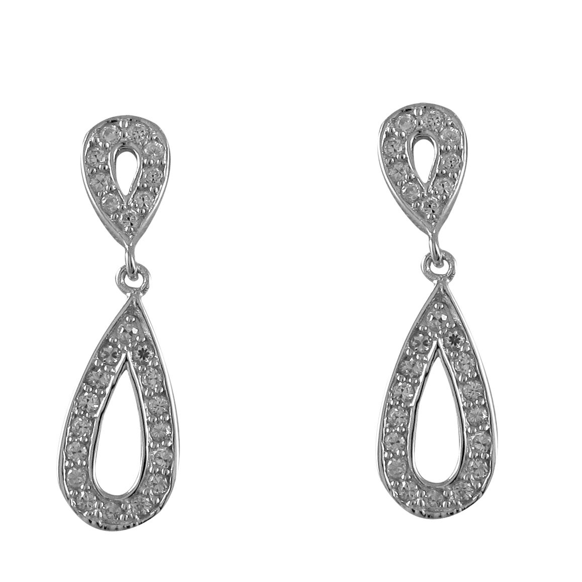 Rhodium Plated Sterling Silver, Open Teardrop CZ Post Earrings, 1&Quot;