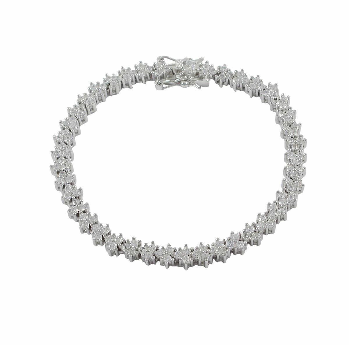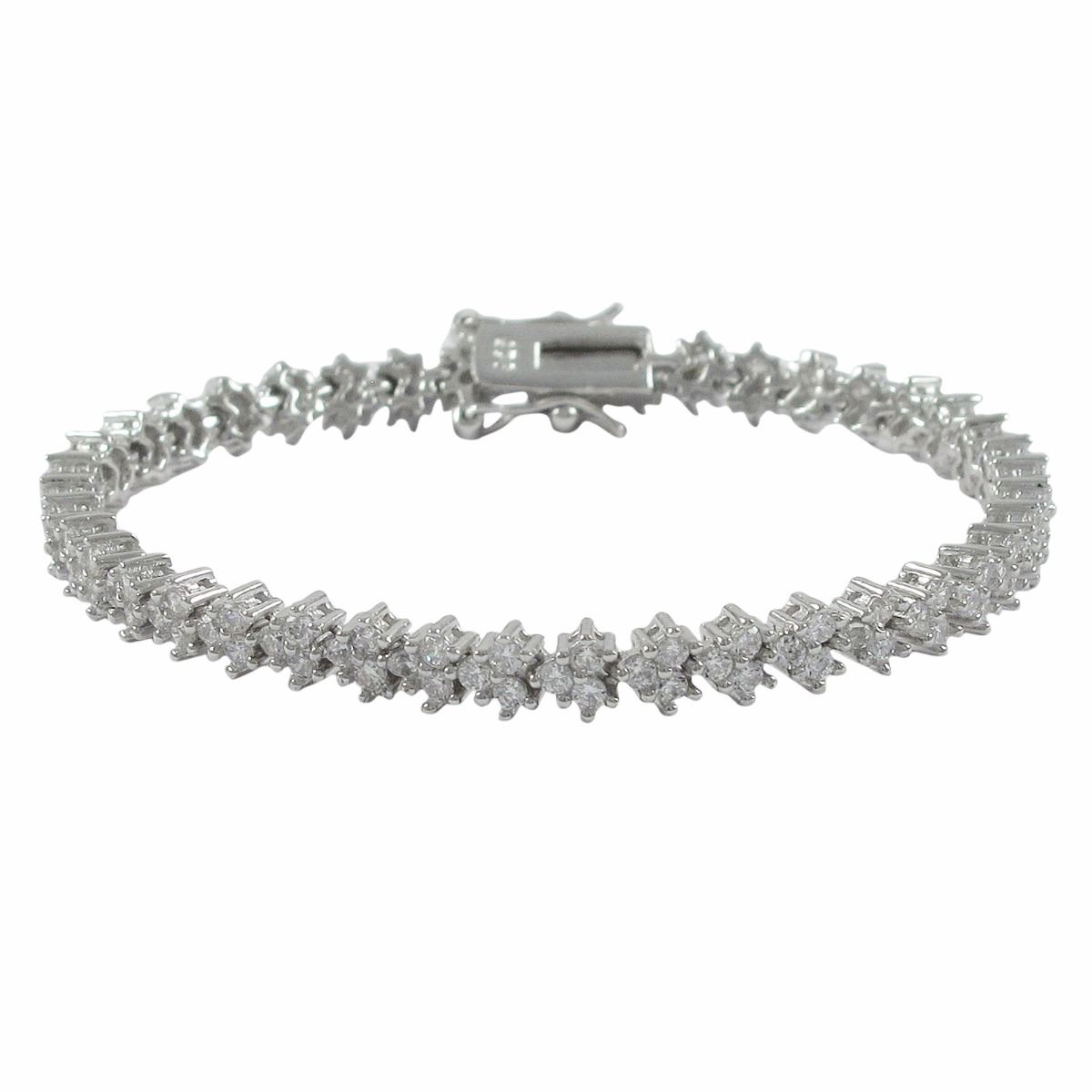 Rhodium Plated Sterling Silver &Quot;V&Quot; Shaped CZ Bracelet With Safety Clasp, 7.5&Quot;