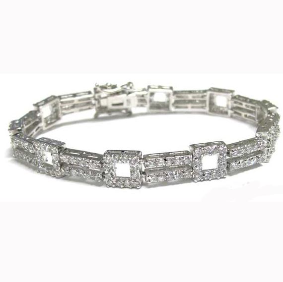 Rhodium Plated Sterling Silver Two Row Tennis With Open Squares CZ Bracelet, 6.5"
