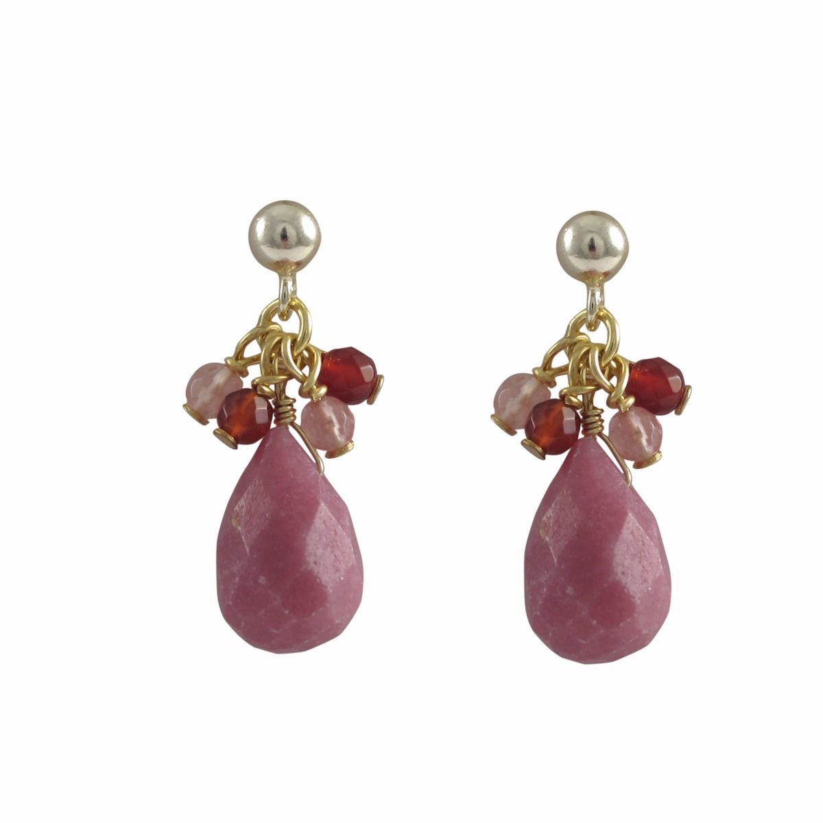 Rhodnite(Pink) Combination Semi Precious Stones, Gold Plated Sterling Silver Post Earrings, 1"