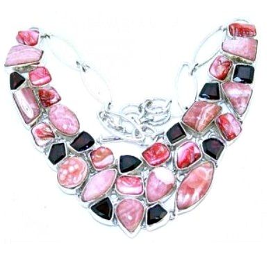 Silver and Rhodochrosite & Garnet Necklace. Allow 6 to 8 weeks for delivery.