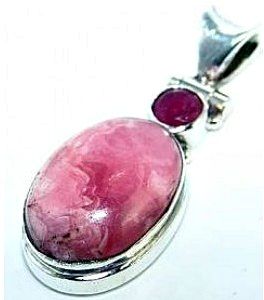 Silver and Rhodochrosite & Ruby Pendant. Allow 6 to 8 weeks for delivery.
