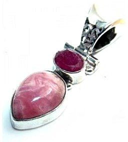 Silver and Rhodochrosite & Ruby Pendant. Allow 6 to 8 weeks for delivery.
