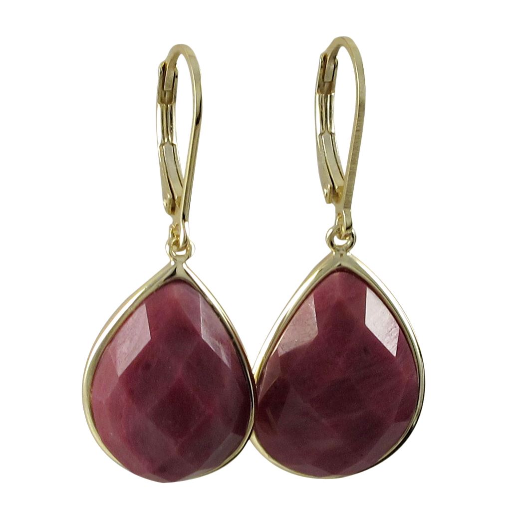 Rhodonite (Pink) Semi Precious Faceted Stone On Gold Plated Sterling Silver Lever Back Earrings