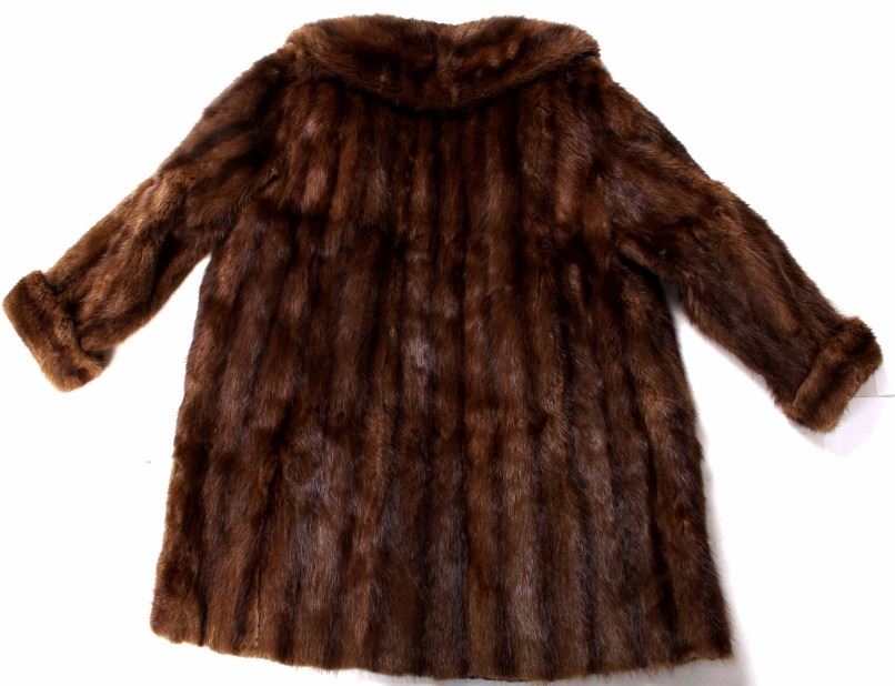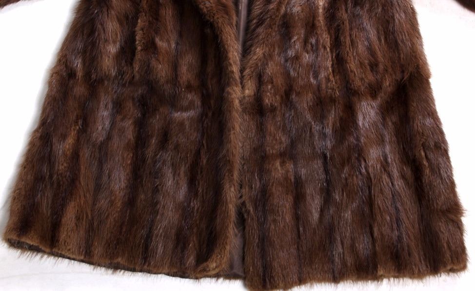 This lot features a Rhomberg mid length authentic mink coat. It is made of minks fur and has a wonderful tone. The coat is in good condition for its age. Measures: 18" shoulder to shoulder and 36" H