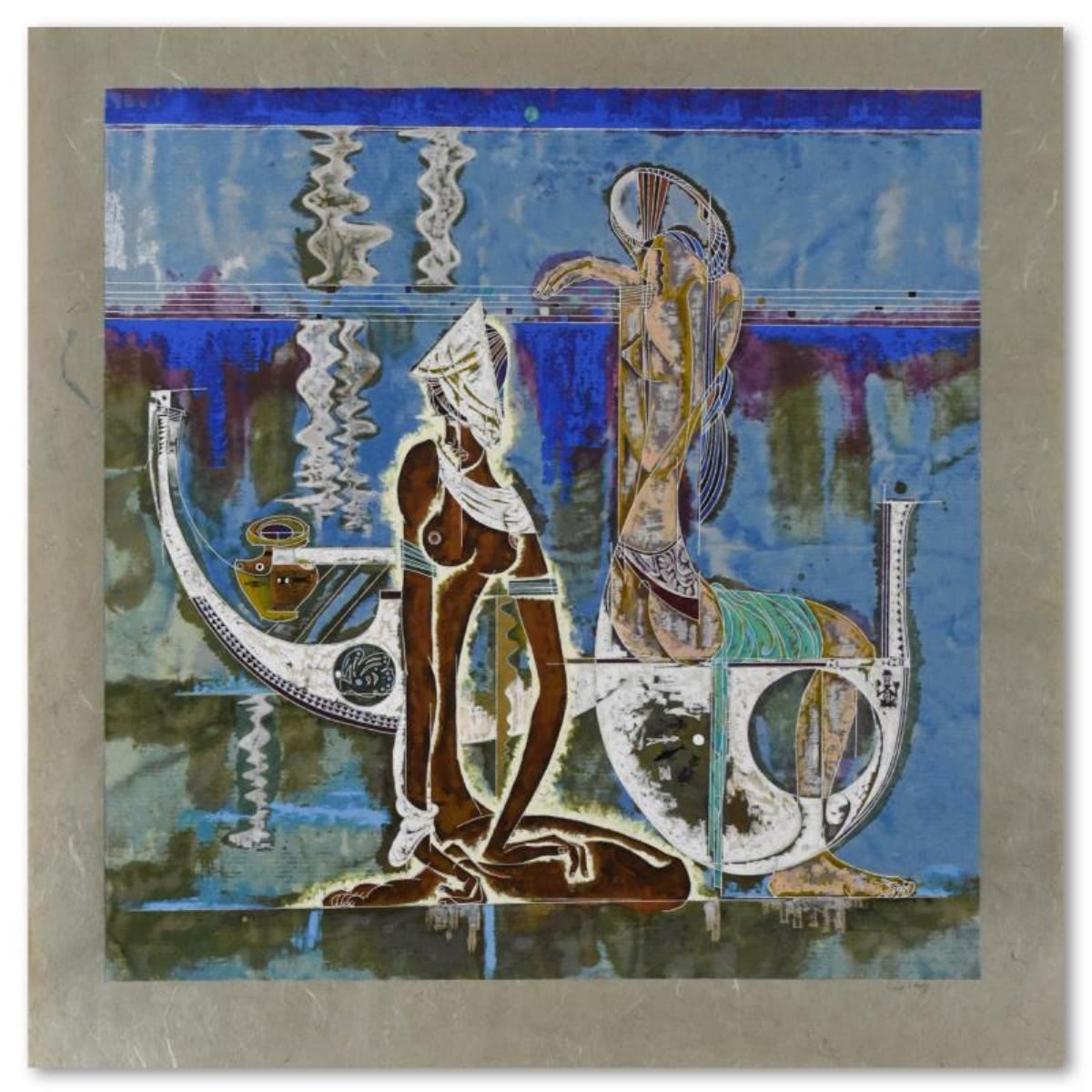 "Rhyme of the Sea" is a limited edition serigraph on rice paper by Lu Hong, numbered and hand signed by the artist. Includes Letter of Authenticity. Measures approx. 34" x 35" (with border), 29" x 29" (image).