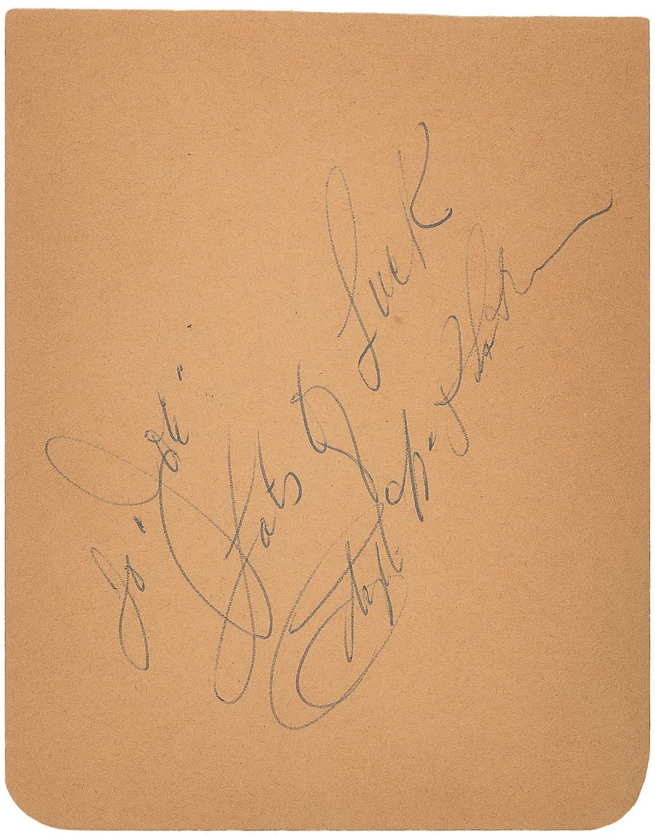 All lots sold by RR Auction are accompanied by an Auction Certificate (“AC”). On any lot presented with an AC issued by RR Auction, the certification is only as to its attribution to the person or entity described or to the lot's usage and only as explicitly stated therein (the “Certification of Authenticity”), to the exclusion of any other warranties, express or implied, including but not limited to those pursuant to the Uniform Commercial Code. The Certification of Authenticity inures only to the original Bidder (as shown in RR Auction's records). Bidder may not transfer, assign, or otherwise convey the Certification of Authenticity, and such purported transfer, assignment, or conveyance shall be null and void. The Certification of Authenticity is valid from date of the Auction in which Bidder was awarded the lot (the “Auction Date”) until five (5) years after the Auction Date, without exception.