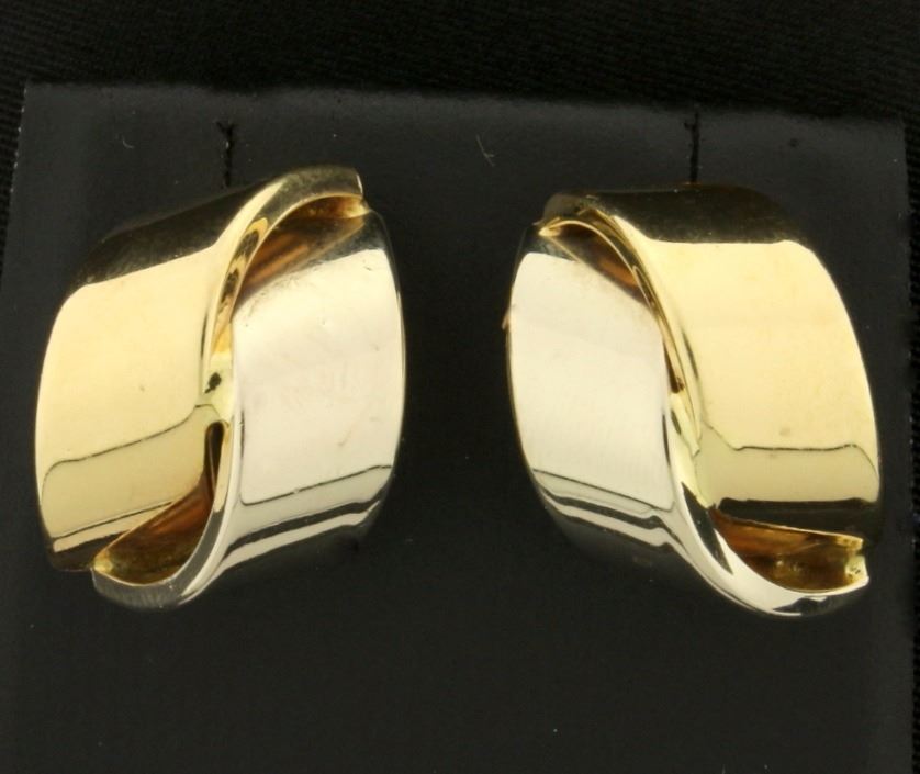 In 14k yellow and white gold, 3/4" long with no backs. 4.6g.