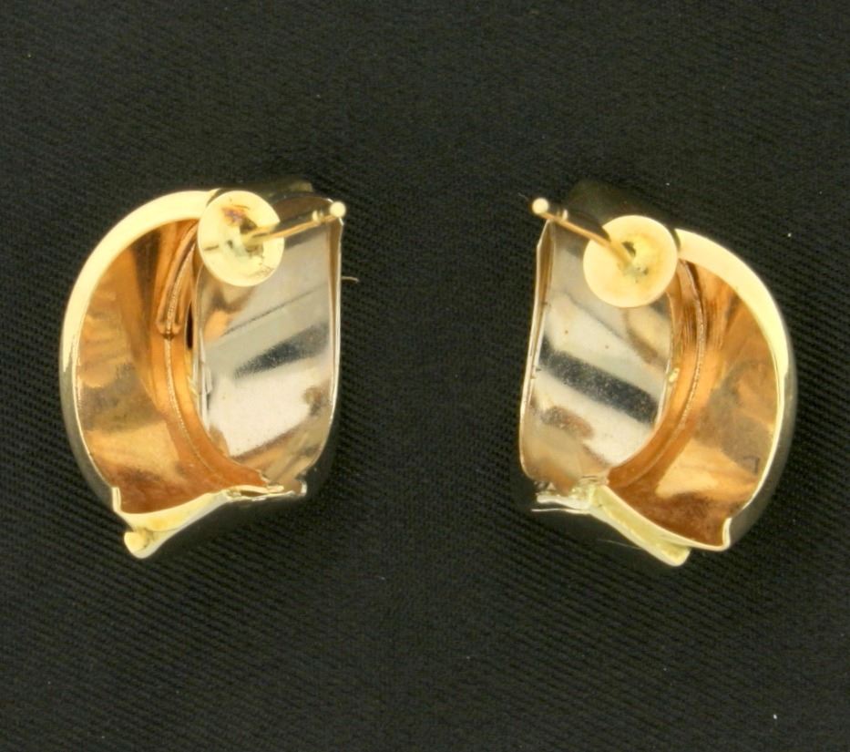 In 14k yellow and white gold, 3/4" long with no backs. 4.6g.