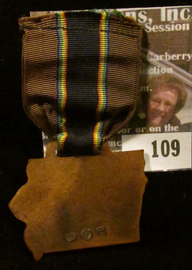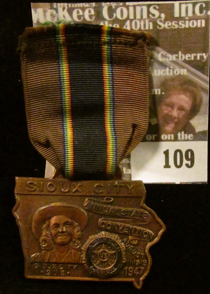 Ribbon with hanging copper medal "Sioux City/Annual State/Convention/American Legion/August/11-12-13/1947/"Sioux City/Sue".