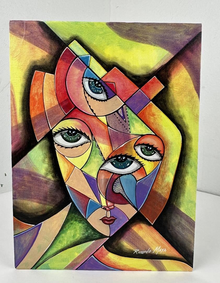 Artist is Cuban Born Ricardo Maya. Now living in Nicaragua. 11 3/4" by 15 3/4". Ricardo Maya (Born 1969) is active/lives in Cuba, Nicaragua. Ricardo Maya is known for Abstract, surrealist figure painting, mermaids, nudes.