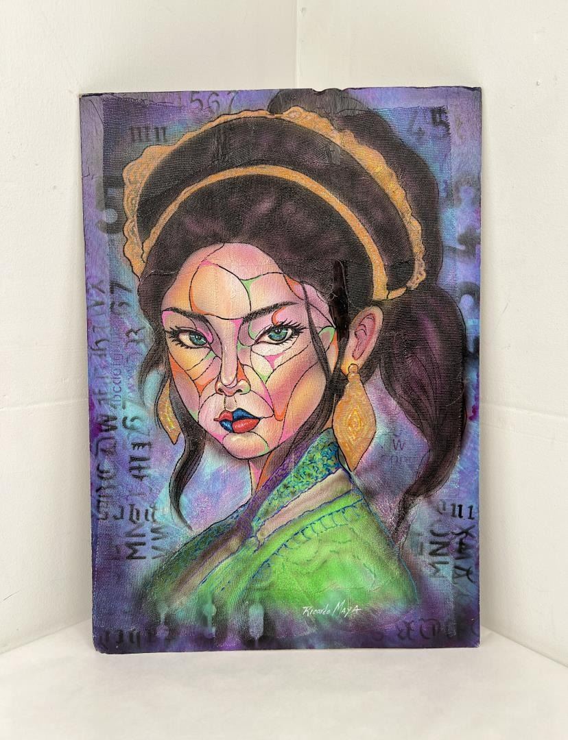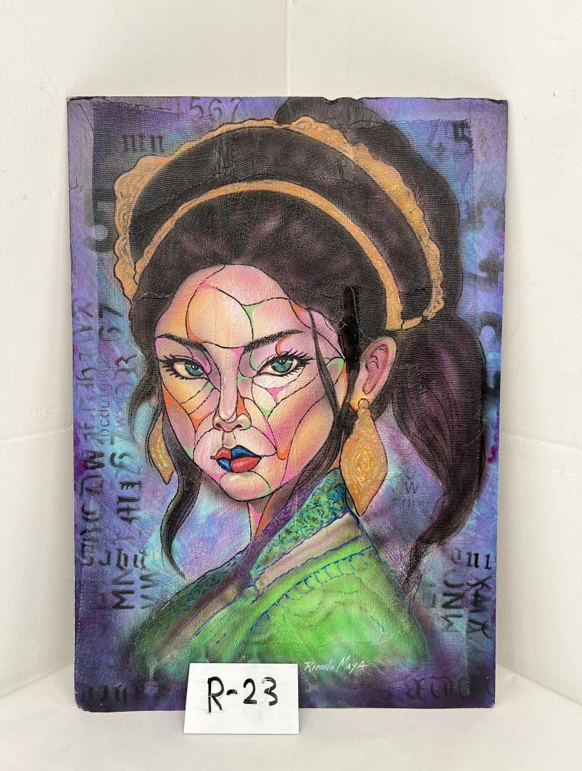 19 3/4" by 13 3/4". Artist is Cuban Born Ricardo Maya. Now living in Nicaragua. Ricardo Maya (Born 1969) is active/lives in Cuba, Nicaragua. Ricardo Maya is known for Abstract, surrealist figure painting, mermaids, nudes.