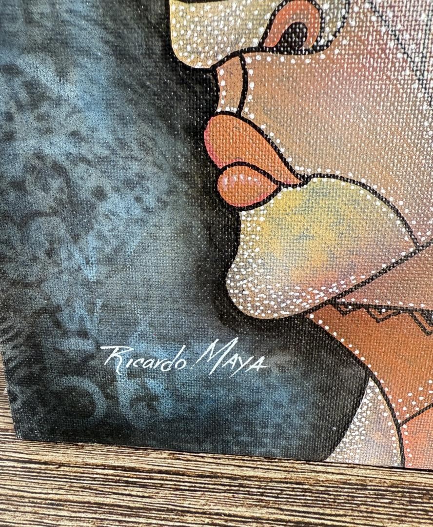 11 3/4" by 15 3/4". Artist is Cuban Born Ricardo Maya. Now living in Nicaragua. Ricardo Maya (Born 1969) is active/lives in Cuba, Nicaragua. Ricardo Maya is known for Abstract, surrealist figure painting, mermaids, nudes.
