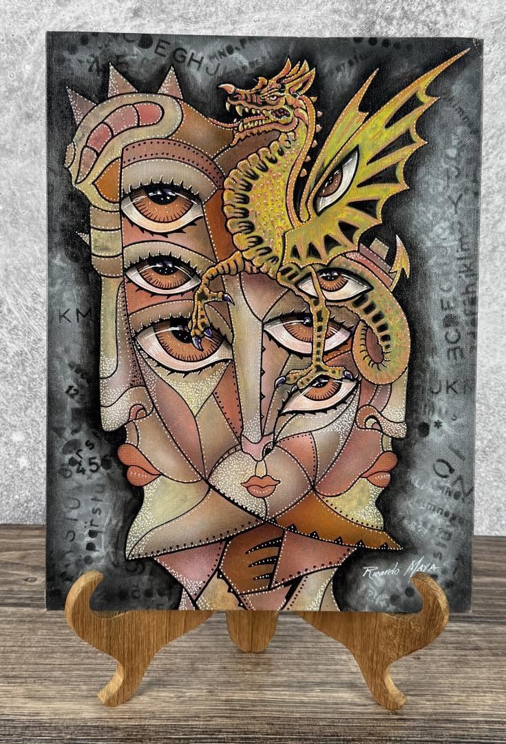 11 3/4" by 15 3/4". Artist is Cuban Born Ricardo Maya. Now living in Nicaragua. Ricardo Maya (Born 1969) is active/lives in Cuba, Nicaragua. Ricardo Maya is known for Abstract, surrealist figure painting, mermaids, nudes.