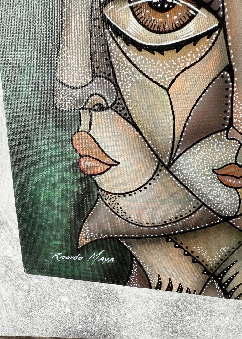 11 3/4" by 15 3/4". Artist is Cuban Born Ricardo Maya. Now living in Nicaragua. Ricardo Maya (Born 1969) is active/lives in Cuba, Nicaragua. Ricardo Maya is known for Abstract, surrealist figure painting, mermaids, nudes.