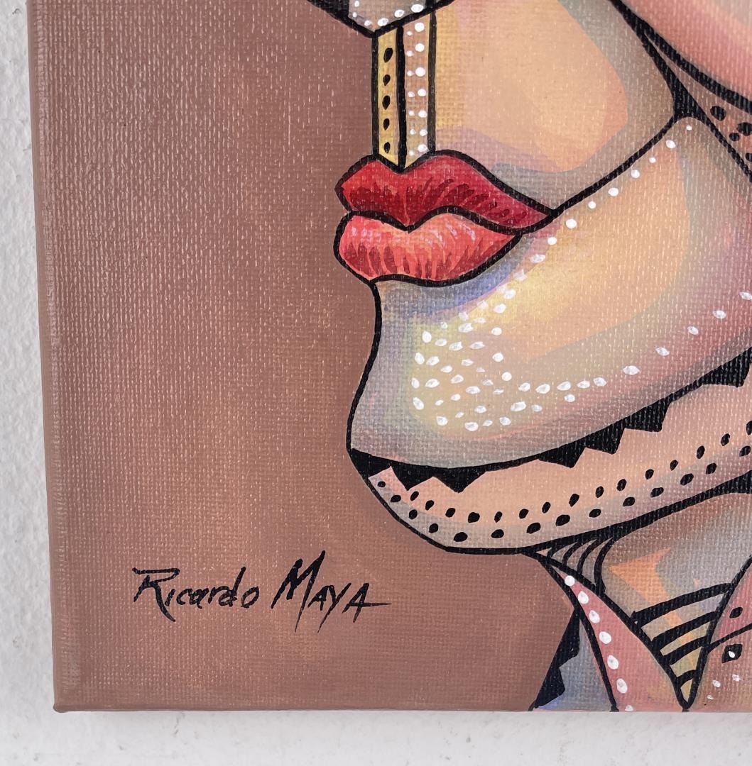 Artist is Cuban Born Ricardo Maya. Now living in Nicaragua. 11 3/4" by 15 3/4". Ricardo Maya (Born 1969) is active/lives in Cuba, Nicaragua. Ricardo Maya is known for Abstract, surrealist figure painting, mermaids, nudes.
