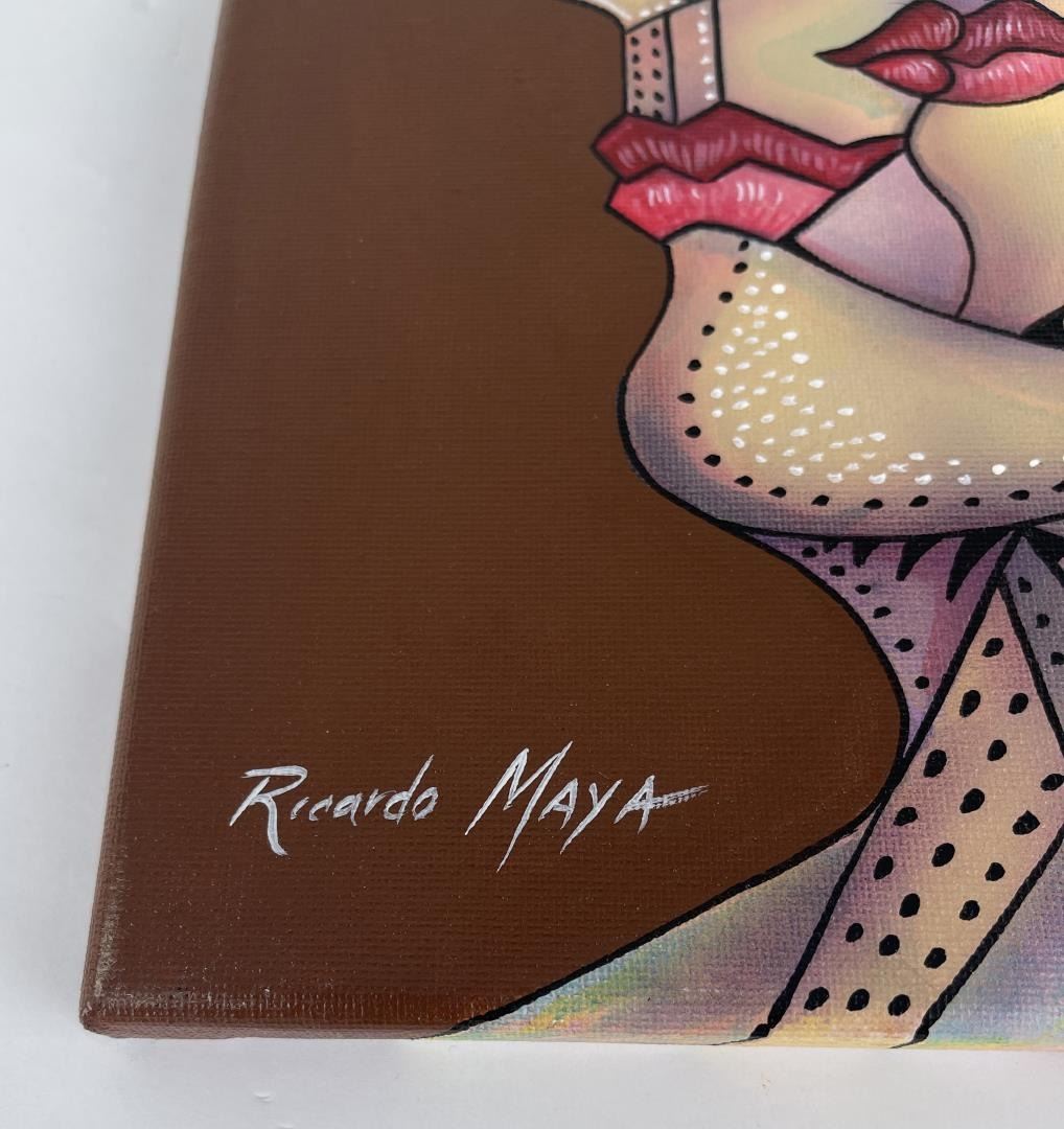 Artist is Cuban Born Ricardo Maya. Now living in Nicaragua. 11 3/4" by 15 3/4". Ricardo Maya (Born 1969) is active/lives in Cuba, Nicaragua. Ricardo Maya is known for Abstract, surrealist figure painting, mermaids, nudes.