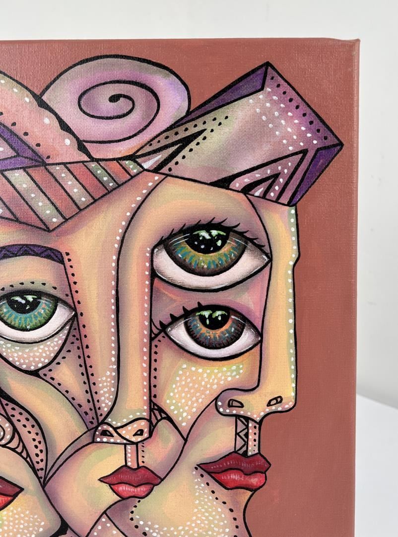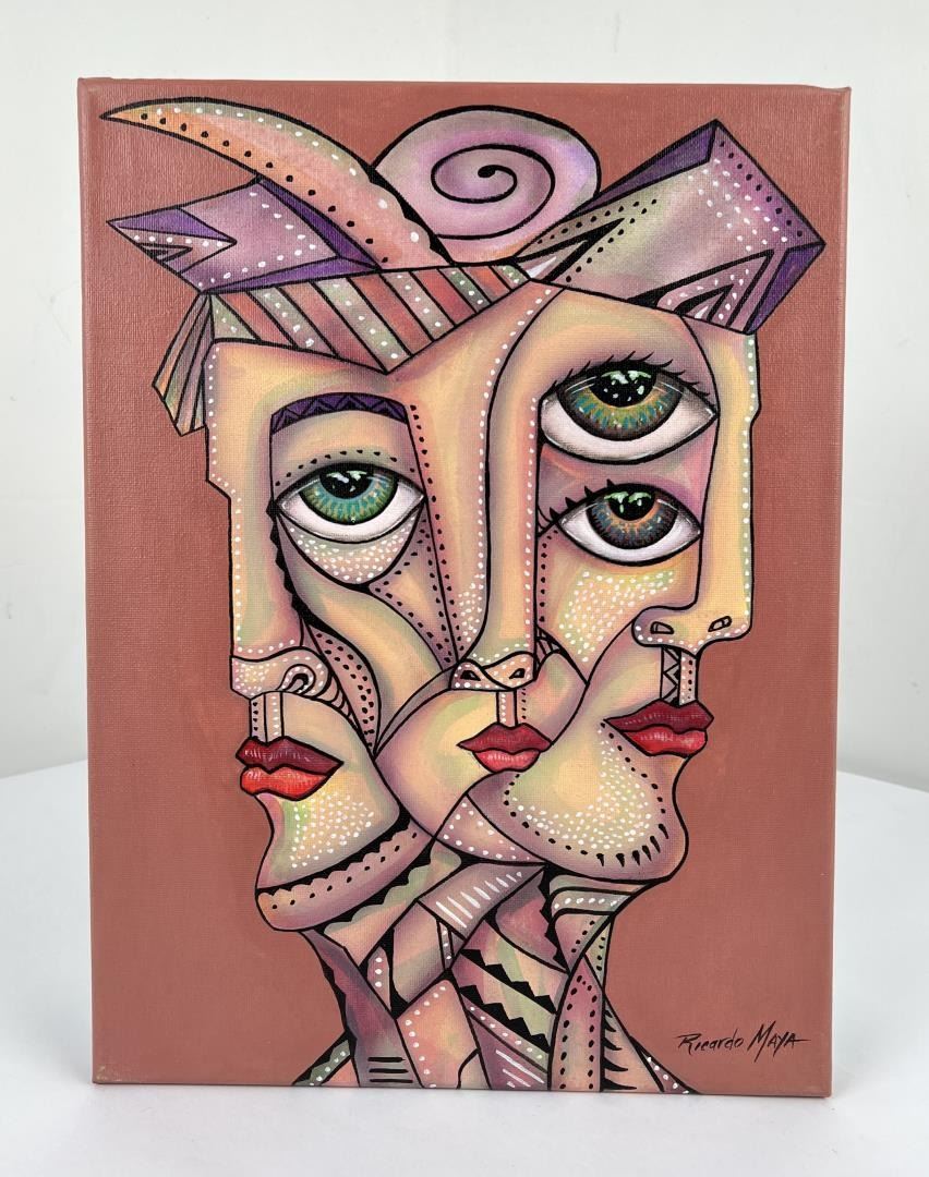 Artist is Cuban Born Ricardo Maya. Now living in Nicaragua. 11 3/4" by 15 3/4". Ricardo Maya (Born 1969) is active/lives in Cuba, Nicaragua. Ricardo Maya is known for Abstract, surrealist figure painting, mermaids, nudes.