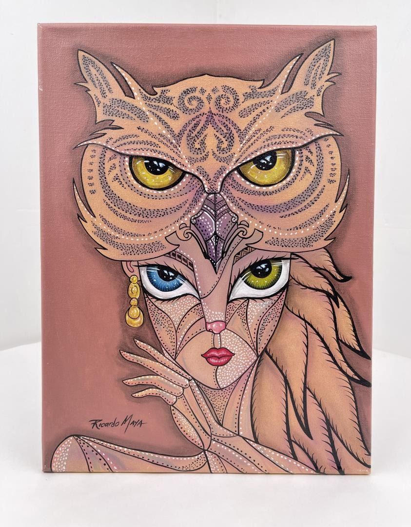 Artist is Cuban Born Ricardo Maya. Now living in Nicaragua. 11 3/4" by 15 3/4". Ricardo Maya (Born 1969) is active/lives in Cuba, Nicaragua. Ricardo Maya is known for Abstract, surrealist figure painting, mermaids, nudes.