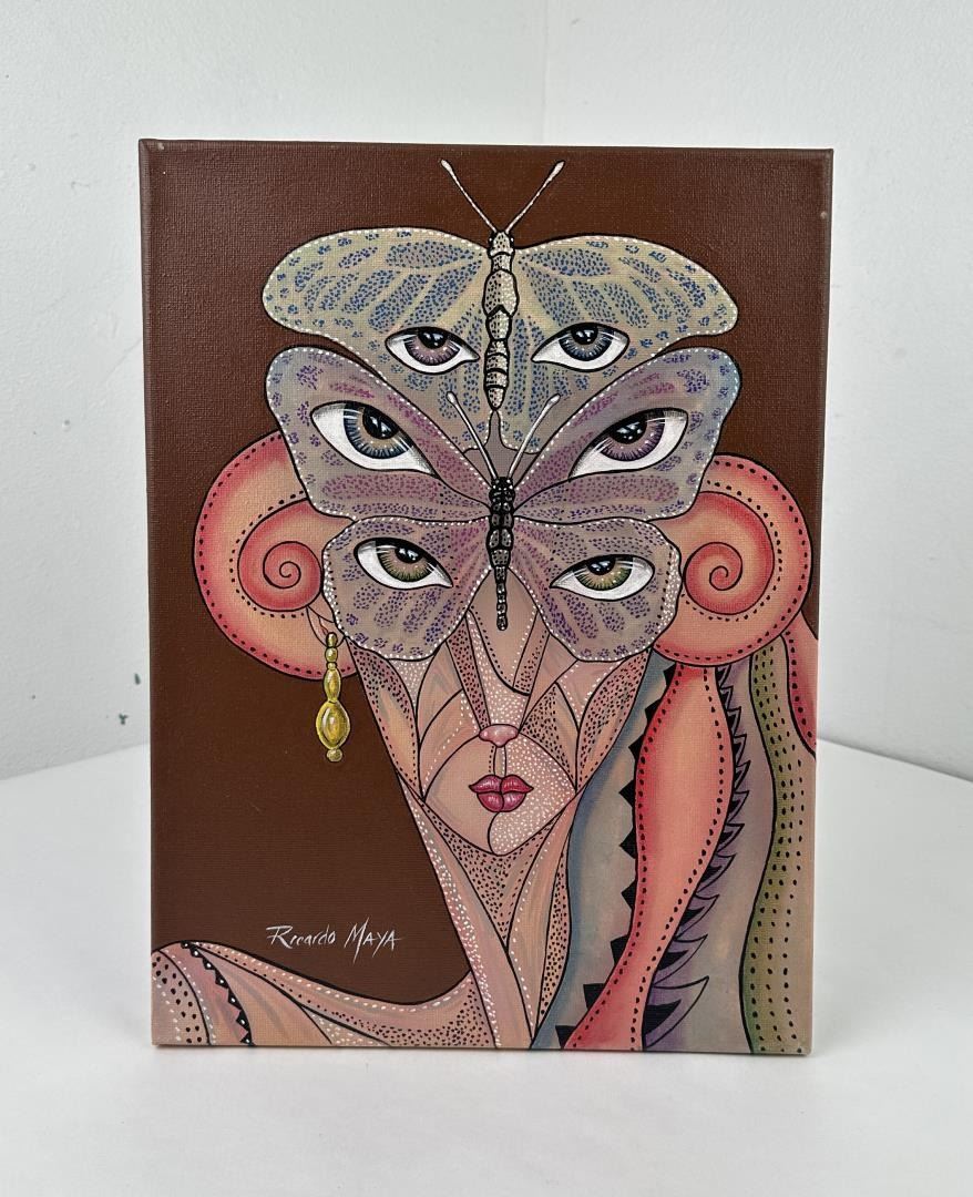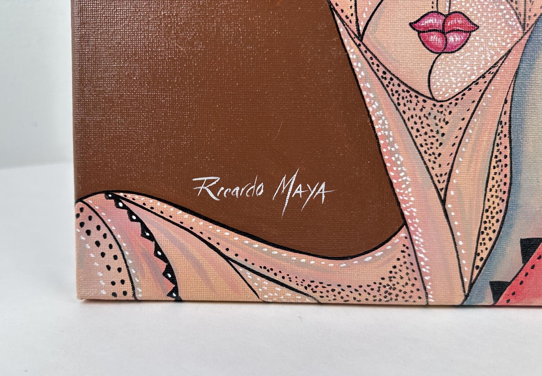 Artist is Cuban Born Ricardo Maya. Now living in Nicaragua. 11 3/4" by 15 3/4". Ricardo Maya (Born 1969) is active/lives in Cuba, Nicaragua. Ricardo Maya is known for Abstract, surrealist figure painting, mermaids, nudes.